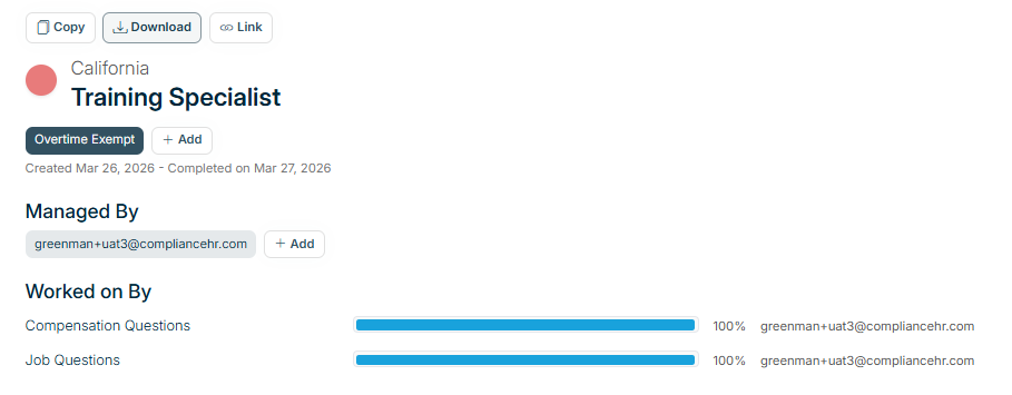 Link - provides a unique link to this specific evaluation that allows the Manager to share it with other platform users.