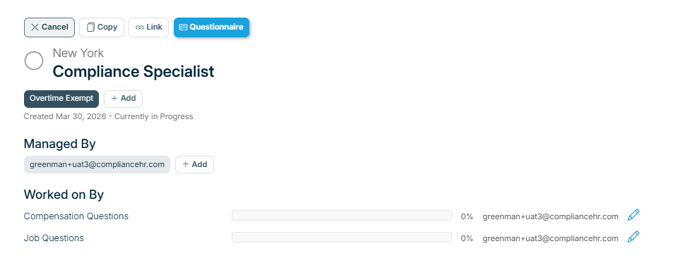 Worked On By - The “Worked On By” section shows who’s assigned to the questionnaire and lets managers update those assignments.