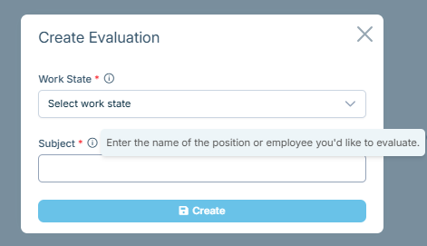 The Subject referring to the Position or Employee being evaluated. If you need assistance, refer to the information icon by each title.![]()