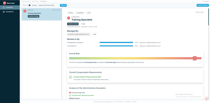 You will also see the Overall Risk, along with the Overall Compensation Requirements.